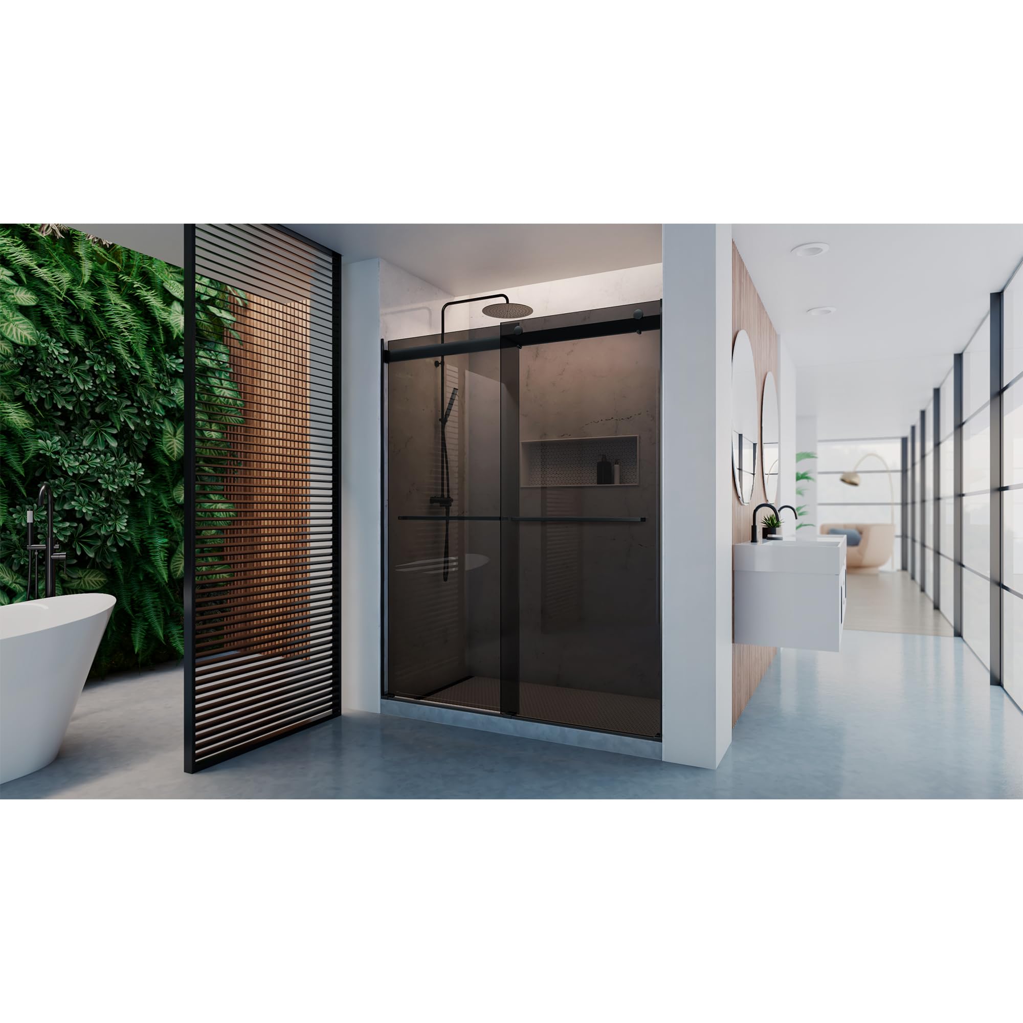 - SMOOTH BYPASS SLIDING SYSTEM: Dual sliding glass panels glide quietly and effortlessly on precision roller wheels, providing easy access from either side without requiring swing‑door clearance.