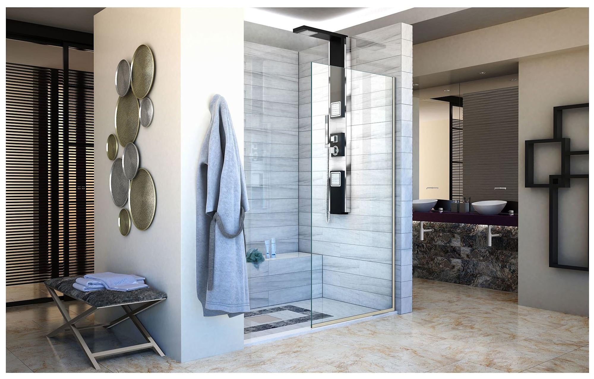 - Premium 3/8 in. (10mm) certified tempered glass; Frameless walk-in shower design, doorless style; Reversible for a right or left walk-in opening